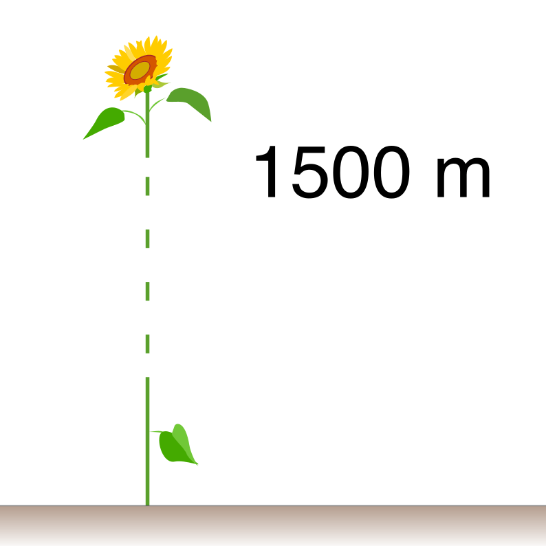 昨日は、そんなエピソードを思い出しながら、絵を描いてみました。例えば、人間の脳の一次運動野という、運動を指令する領域には、ベッズ細胞(Betz cell)というとても大きな細胞があります。どのくらい大きいかというと、細胞体の直径が100ミクロンにも達するものがあり、直径20ミクロンの軸索を、脳から脊髄の腰レベルにまで伸ばしています。成人で、およそ1メートルになるでしょうか。この長く太い軸索は、筋肉を収縮させる運動ニューロンと接続しています。ベッツ細胞を、直径3センチのひまわりに例えるなら、軸索の長さは、なんと1.5キロにも達するのです!