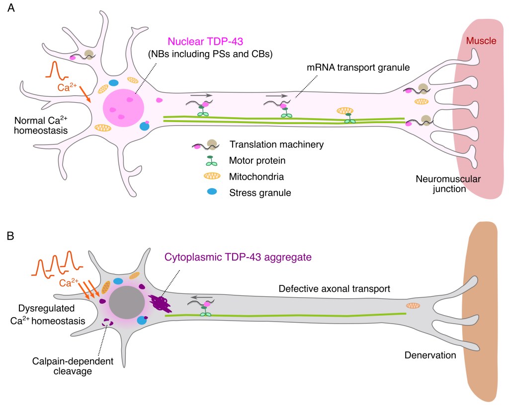 筋萎縮性側索硬化症(ALS)では、意識や五感が保たれたまま、体が動かなくなります。これは、筋肉を収縮させる神経細胞「運動ニューロン」だけが、際立って機能を失うことによります。なぜ、このようなことが起こるのか、未だ謎に包まれています。この現象を、TDP-43と呼ばれるタンパク質の性質から、どのぐらい説明できるのか?について考察した総説を、Cellular and Molecular Life Sciences誌に発表しました